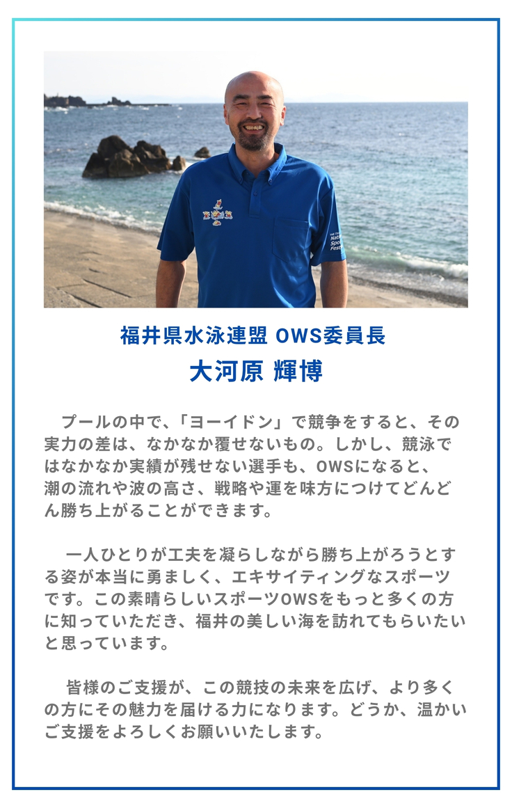 ◇大河原 輝博(福井県水泳連盟 OWS委員長)