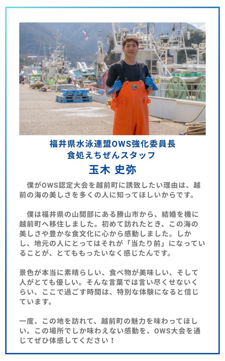 ◇玉木 史弥( 福井県水泳連盟OWS強化委員長 兼 食処えちぜんスタッフ )