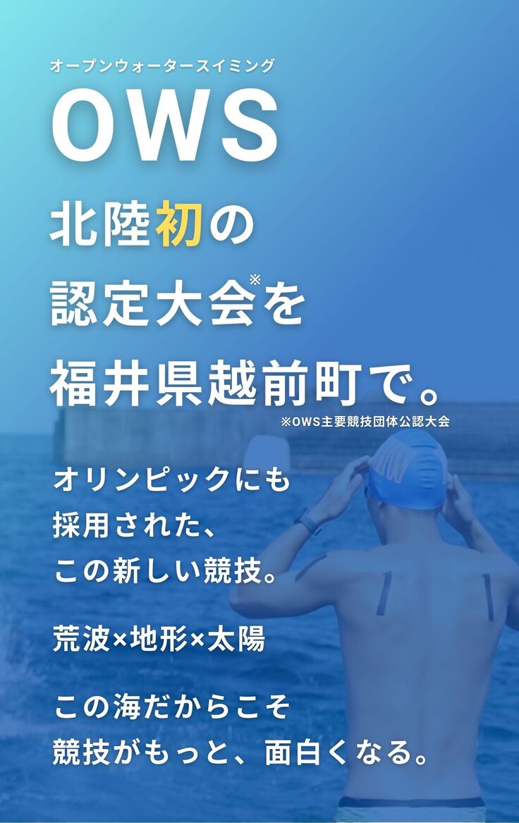 越前町といえば、冬のカニシーズンや夏の花火大会が有名ですが、実はオフシーズンも長く、地域の活力不足と過疎化が大きな課題となっています。 そんな中、OWS大会は越前町の自然を活かした、閑散期に開催できるイベントとして最適なのです。