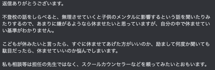 普段、不登校のお子さんの支援をしている中で、下記のような相談を頂きました。