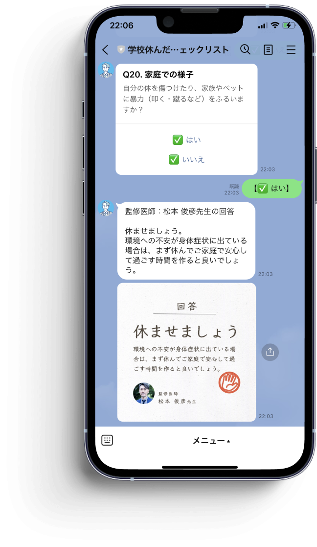 こちらのチェックリストは不登校のお子さんやご家族の支援をしている、不登校新聞 / 株式会社キズキ(キズキ共育塾) / Branchの3社で開発しており、国立研究開発法人 国立精神・神経医療研究センターの松本 俊彦先生に監修して頂いています。