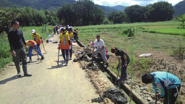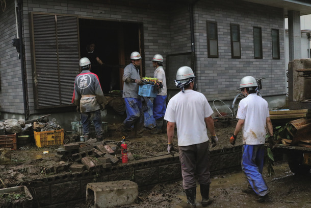 しかし、豪雨後、自衛隊の方や全国から8,000人以上ものボランティアさんなどがきていただき、災害ごみ処理、家財搬出、泥出し、水洗い、給水、炊き出し、風呂、支援物資配布など、多岐にわたり支援をしていただきました。