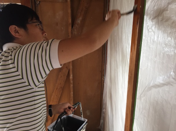 みんな真剣に取り組み、すべての柱を塗りきることができました。