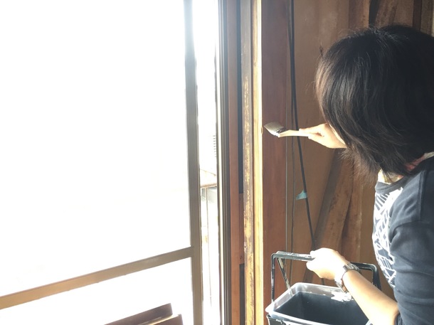 今回は、古い柱の防腐も兼ねて塗料塗りを行いました。