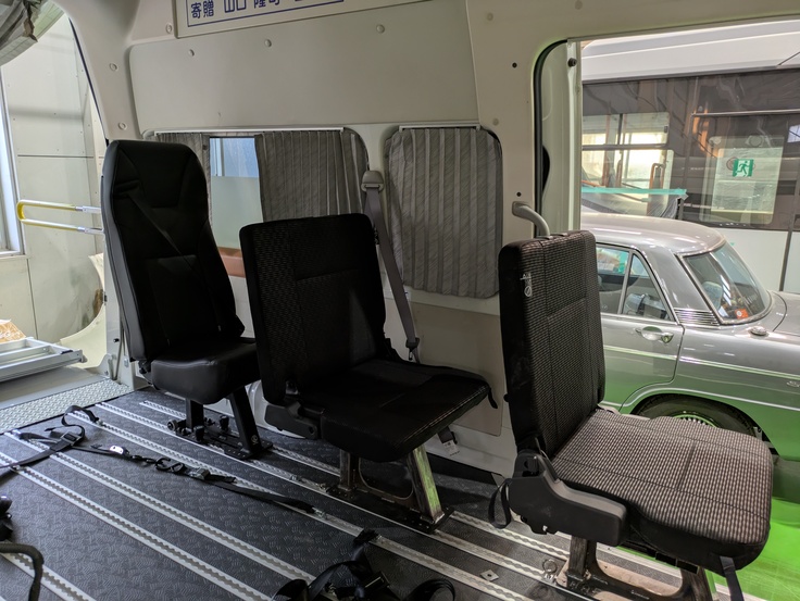 ゆめバスの作業は着々と進んでいます!座席の装着作業が2ヵ所の工場で行われたことから、少し時間がかかりましたが、無事にセットされました。