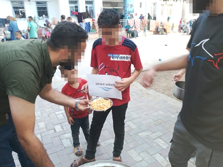 ガザ地区の避難所に温かい食事を提供しました