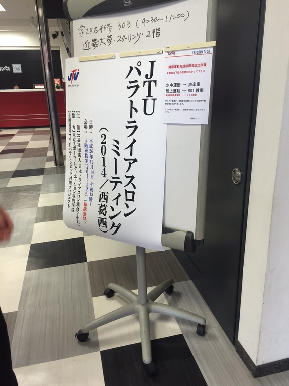 12月14日、東京・西葛西にて、日本トライアスロン連合主催のパラトライアスロンミーティングに参加してきました。例年に比べて、選手が来ていない…しかも指定選手が少ない。ちょっと寂しかったです。ま、他人のことはさておき、私はない頭をフル稼働して、居眠りもせずしっかり勉強しました。ちなみに、今回も大西さんと同行しました。