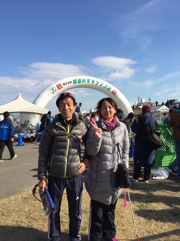 弟が伴走で、これで3回目の参加となる矢作川マラソンに参加。このコース、去年より河川敷が長くなり、強風によりあおられる厳しいレースでした。
