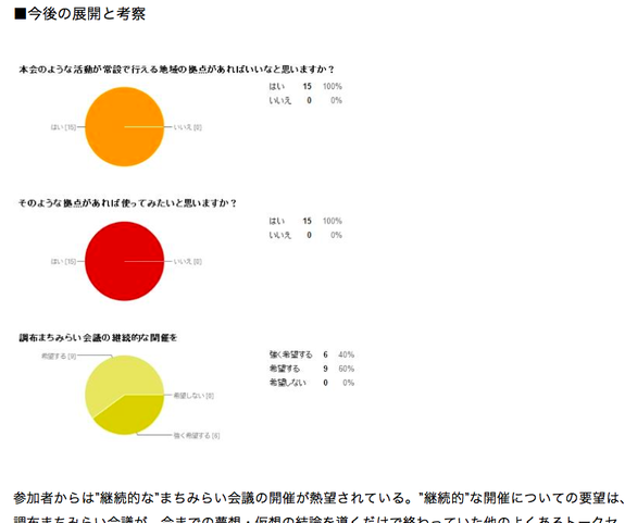 (調布まちみらい会議の活動報告書の一部。なんとご参加頂いた全員が、交流や活動を共有出来る場所を望んでいらっしゃいました。)