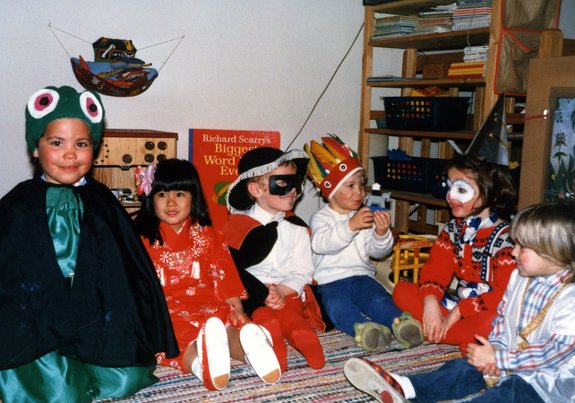 (現地校のイベントパーティーの様子。様々な国の衣装にお着替え♪)