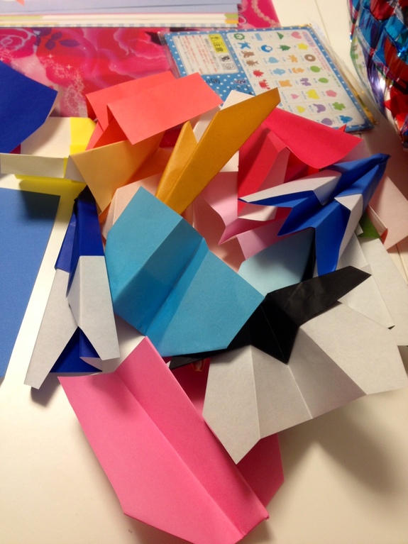 (3歳児 いつの間にか折られていた、創造の中で作り出した多種多様な飛行機)