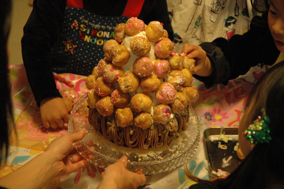 (3歳時 シュークリームにデコレーションをしてツリー制作)