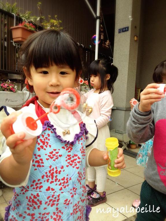 プログラムには予定していなかったのですが、シャボン玉やりたーい!!ということで、ロシアで買ってきたお土産をみんなに渡し、ロシア産シャボン玉大会!