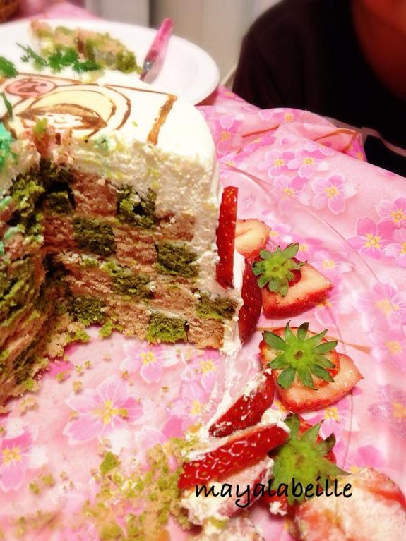 と、さすがにかぐや姫は仕込めなかったのですが、イチゴと、抹茶のサンセバスチャンにしてみたよー♪