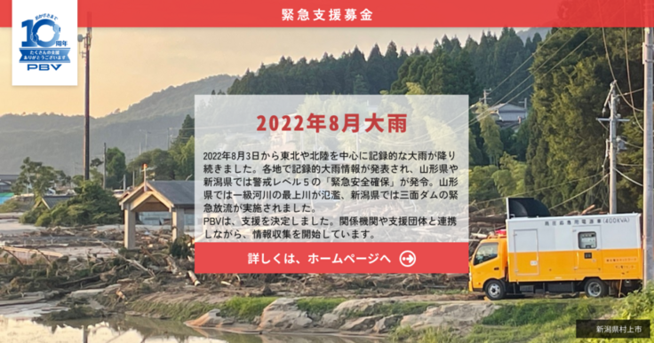 2021年8〜9月に実施したPBVのクラウドファンディング「2021年8月豪雨災害 | みんなで被災地を支えたい」にて、皆さまから心温かなご支援を頂きました。