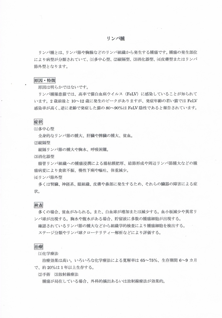 かかりつけの動物医からいただいたリンパ腫の説明用資料が以下です。