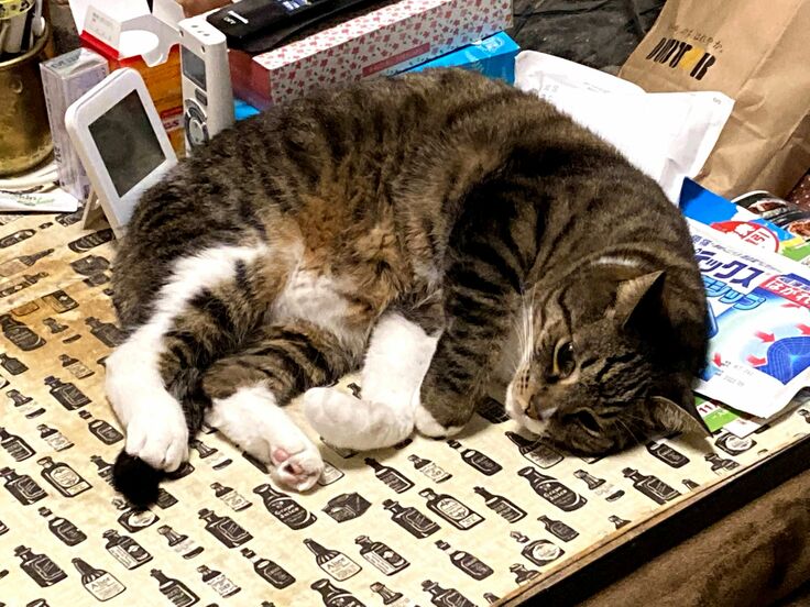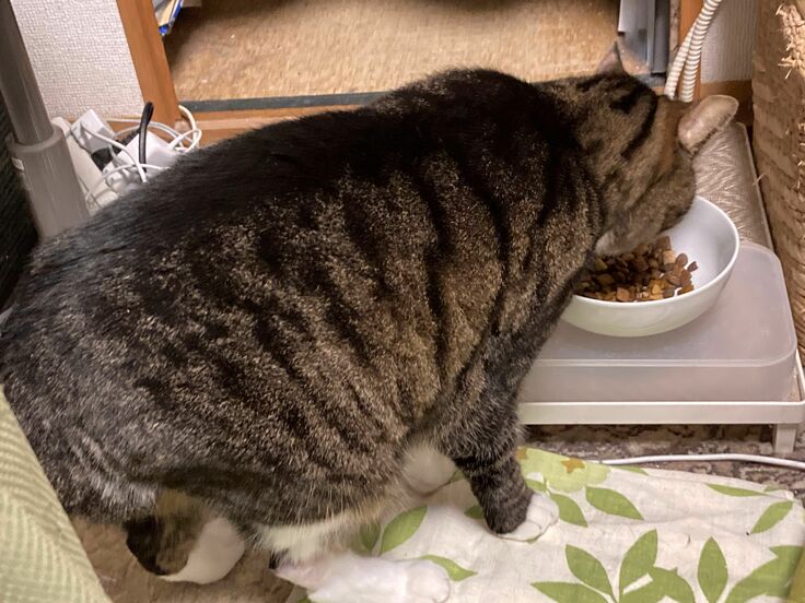 後脚の踵に膨らみができているので、多少ぎこちない歩き方に見える場合があります。また、後述する最初の抗がん剤Aが効かず、強い痛みがあるのか聴いたことのない大きな激しい咆哮が続いたことがあります。