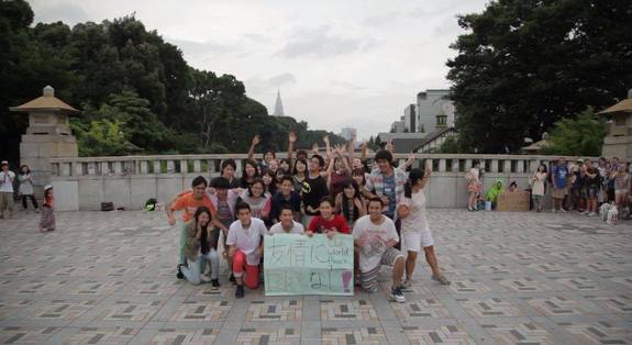(インターナショナルなメンバーで「友情に国境なし!」と差別などに反対するメッセージをフラッシュモブ)