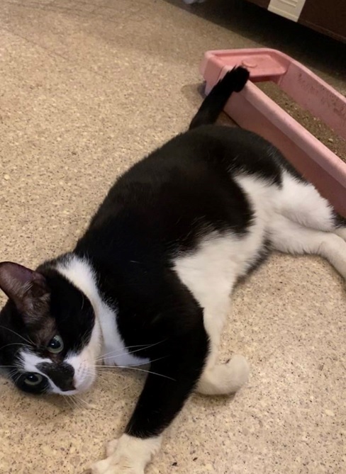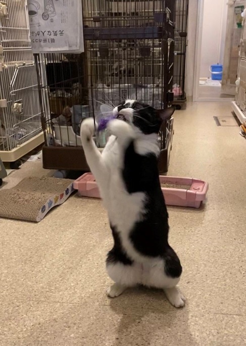 ビビリさんですが、玩具が大好きで遊びながらタッチが出来るようになりました。チップちゃんのほうから近づいてきてくれるようになりゴロンとお腹も見せてくれたり。このようなことが私たちのお世話の励みになっています。施設にはいろいろな個性の猫さんがいます。スタッフやボランティアの方々が愛情を注いでくださるおかげでみんな穏やかに過ごすことが出来ています。みんなに素敵なご縁がありますように。