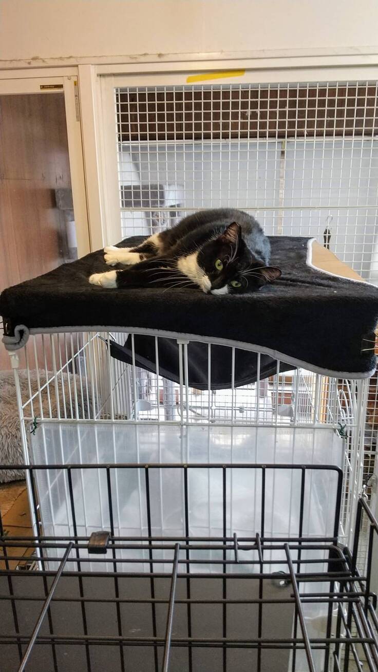 片原横町施設のエメちゃんは、高い所が大好きです。ななみちゃんのケージの上でまったりしています。ボランティアの中川さんが撮影くださいました。施設の毎日はこんな感じで穏やかな時間が過ぎていきます。片原横町施設(猫舎)は、猫愛溢れるスタッフやボランティアの方々のおかげで人も動物も幸せ〜♡