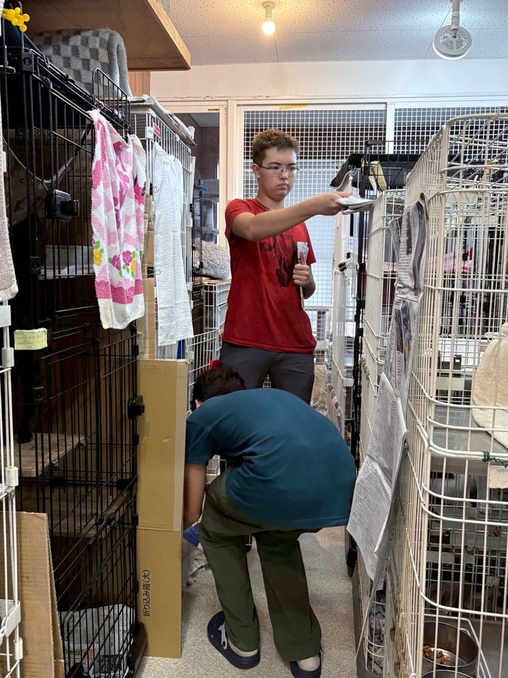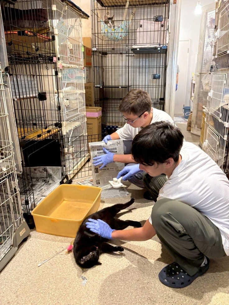 連日ご家族でボランティア参加くださいました。ありがたいです。猫たちも興味津々。施設内は優しい風が吹いて心地よい時間が流れます。