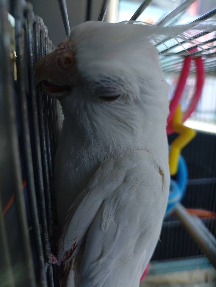 小鳥は不安からか少しケージを動かしただけでも羽をバタバタし出血。