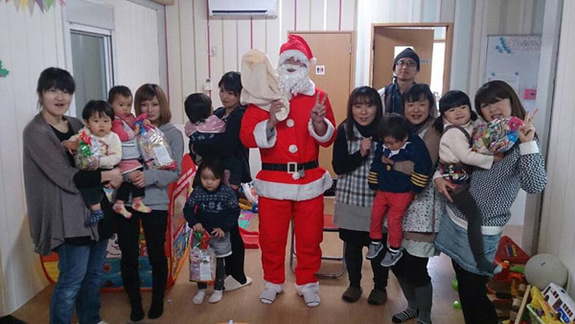 突然の見慣れない真っ白なひげのおじさんに、キッズ達も最初はおっかなびっくりでしたが、お菓子のプレゼントをもらうと大喜び!