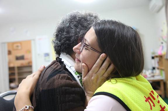 写真は、大槌町の女性とプロジェクト参加者のステラです。