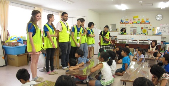 しかし、一緒にうちわに絵を描いたり、ハンカチ落としなどのゲームをしていくうちに「お兄ちゃん」「お姉ちゃん」と呼ぶようになり、次第に子供たちにも明るい笑顔が戻りました。