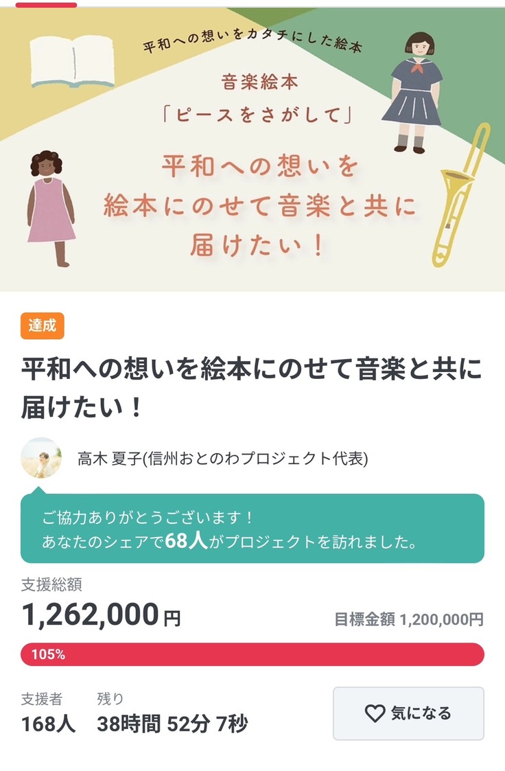 【御礼】目標金額達成!!プロジェクト成立しました!!
