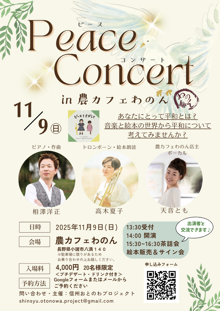 【11月9日ピースコンサートin 農カフェわのん(長野県小諸市)を開催します!】