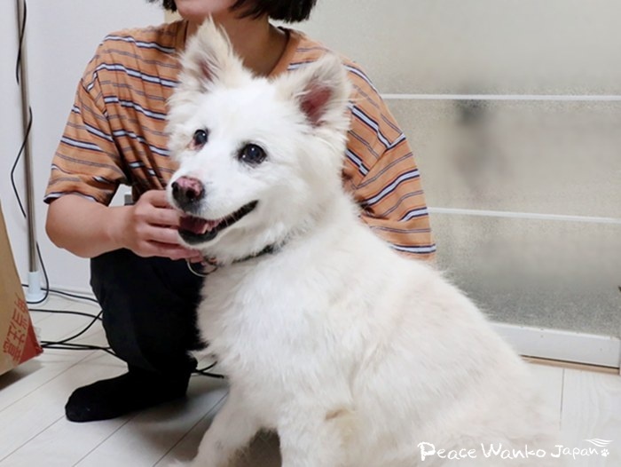 「アビゲイル」は2019年11月26日、推定3歳の時にピースワンコに保護された白いモフモフの男の子です。右眼の怪我のせいか、ピースワンコに来て約5年、里親さまとのご縁がなかなか繋がりませんでした。