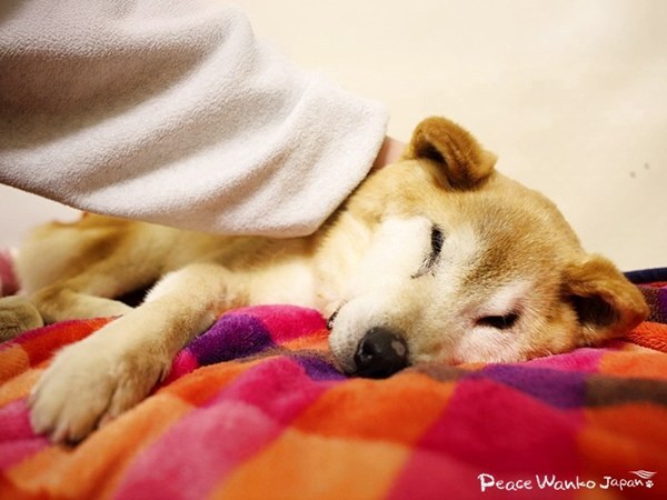 オレンジ犬舎で暮らす「甘栗」は推定12歳。2023年10月10日にピースワンコに保護された柴犬風のおじいちゃんワンコです。保護した時から心臓病やフィラリア症を抱えており、日々の投薬が欠かせませんが、食欲旺盛でお散歩も大好き。同室のワンコに仲良く寄り添って眠るほど、ワンコにも優しい子です。