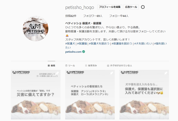 twitterやinstagramなどのSNSでは、犬猫に関する役立つ情報や他の動物愛護・保護団体さんの情報を中心に配信しています。