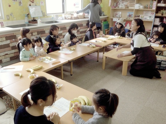 ひろばを利用されているママ達から「食育について学びたい」という多くの声を頂き、先月からコープふくしまの食育アドバイザー大越先生による食育講座が始まりました。