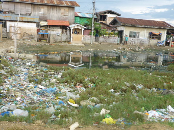 (子どもたちが生活する環境はゴミや汚水で異臭が漂っていました)