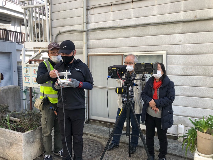 都内でドローンを飛ばすのには事前に警察に届け、保健所の近所の家々に事前に挨拶をするなど、大変です。ドローン撮影のプロの方にお任せでしたが、無事に終わってホッとしています。