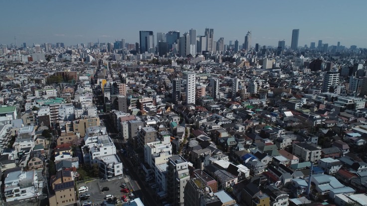 保健所の正面から80メートルの高さまでドローンを飛ばし、新宿方面と、中野駅、サンプラザ方面を撮りました。