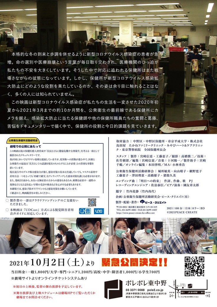 「終わりの見えない闘い~新型コロナウイルス感染症と保健所」にご支援、ご協力をくださったみなさま、いよいよ明後日、10月2日(土)から、ポレポレ東中野での緊急公開がスタートします。