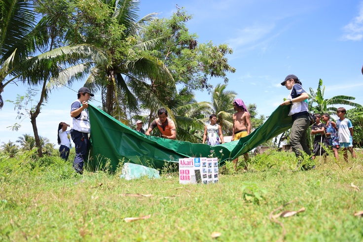 こうした被災状況を受け、空飛ぶ捜索医療団のメンバーは拠点のセブ市内に戻ると、テントやタープに活用できるターポリン(耐久性・防水性に優れたビニール素材)やソーラーライトを手配。車一杯に物資を詰め込み、野宿で避難生活を続ける人びとに届けていきました。