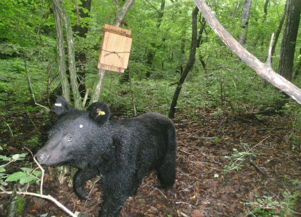 自動撮影のカメラに映ったツキノワグマの姿を見てみたり・・・。