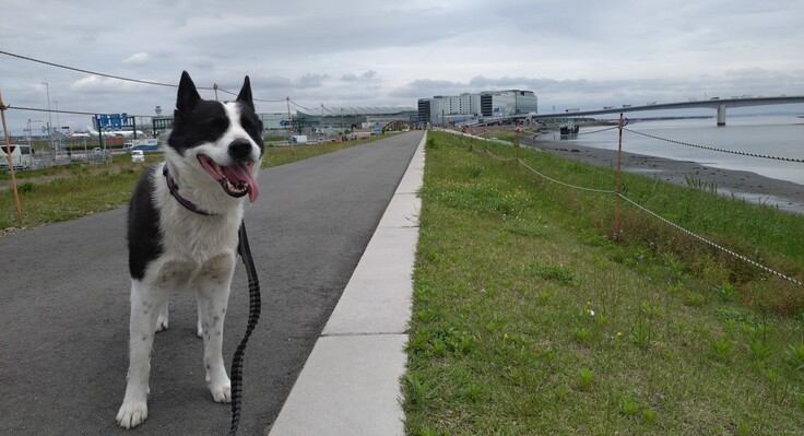 空港近くの多摩川沿いの公園や周辺施設を約1時間30分ほど歩きました。