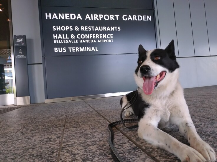 搭乗前に渡航寸前の動物検疫、また十分にお散歩もさせようと思い、少し早めに軽井沢を出たため、出発の5時間半前には羽田空港付近に到着。
