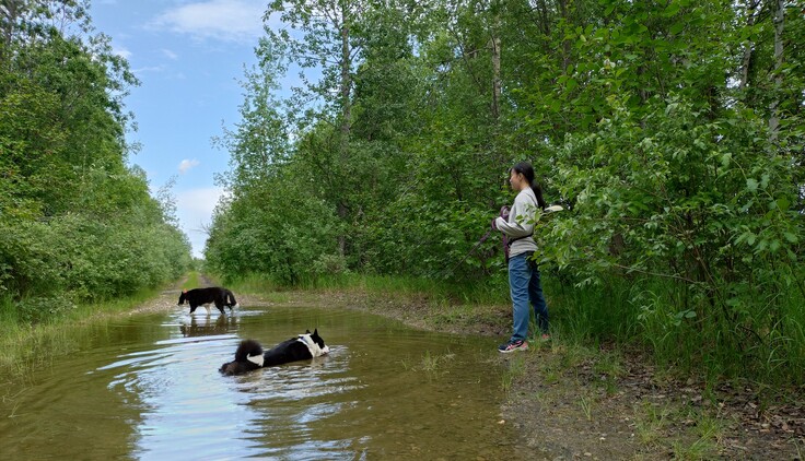 ニルスさん家族が6月20日からしばらくご親族の大切な用事でノルウェーにいくため、また私もクマ対応のために長期間日本を離れることができないために、私の娘(高校3年)がその間のレラの世話や50頭のそり犬の管理をしている女性スタッフを手伝うピンチヒッターとして同行することになりました。