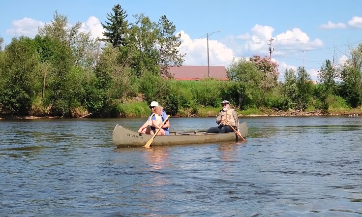 ニルスさんご家族もみんなお父様の家に集まってきて、何とフェアバンクスの市街地を通過して、原野に流れていく「Chena River」にカヌーに行きました。