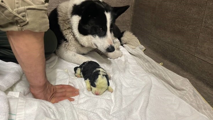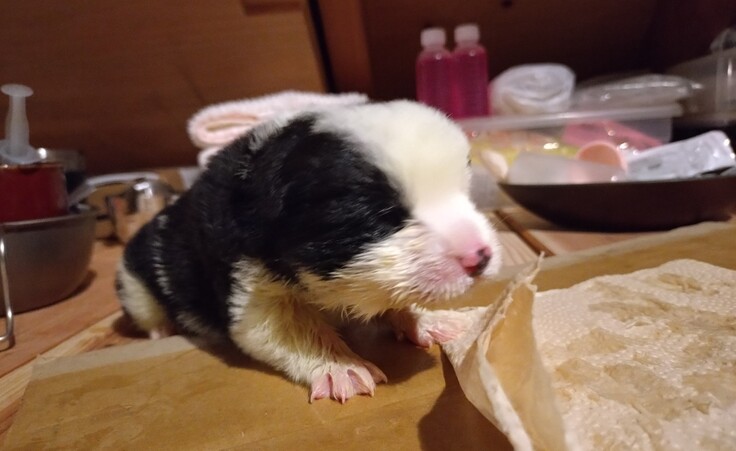 先生から「まずは母犬に見せてあげてください。ただし、帝王切開では、しばしば母犬が育児放棄することがあります。そうなるとあなたが育てるんですよ。」と。
