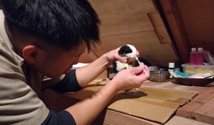 先生に分けていただいた僅かな粉ミルクをカセットコンロで人肌に温めて、数十分おきに一晩中、与え続けました。