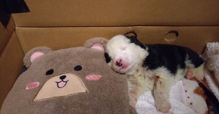 そうこうしていると、動物病院の先生から酸素・保温室で管理されていた唯一生き残った子犬(ハッティー)が、私に手渡されました。