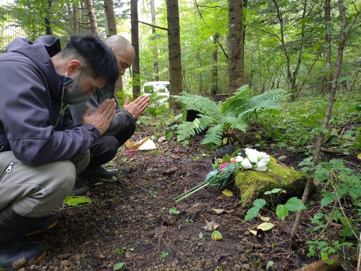 ハッティーがこれからも寂しくないように、彼女のお墓はレラやタマの声が聞こえる繁殖小屋のドッグランのすぐ脇にしました。