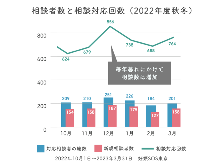 ピッコラーレが運営しているにんしんSOSの相談窓口では、年末にかけて相談件数が増加しています。